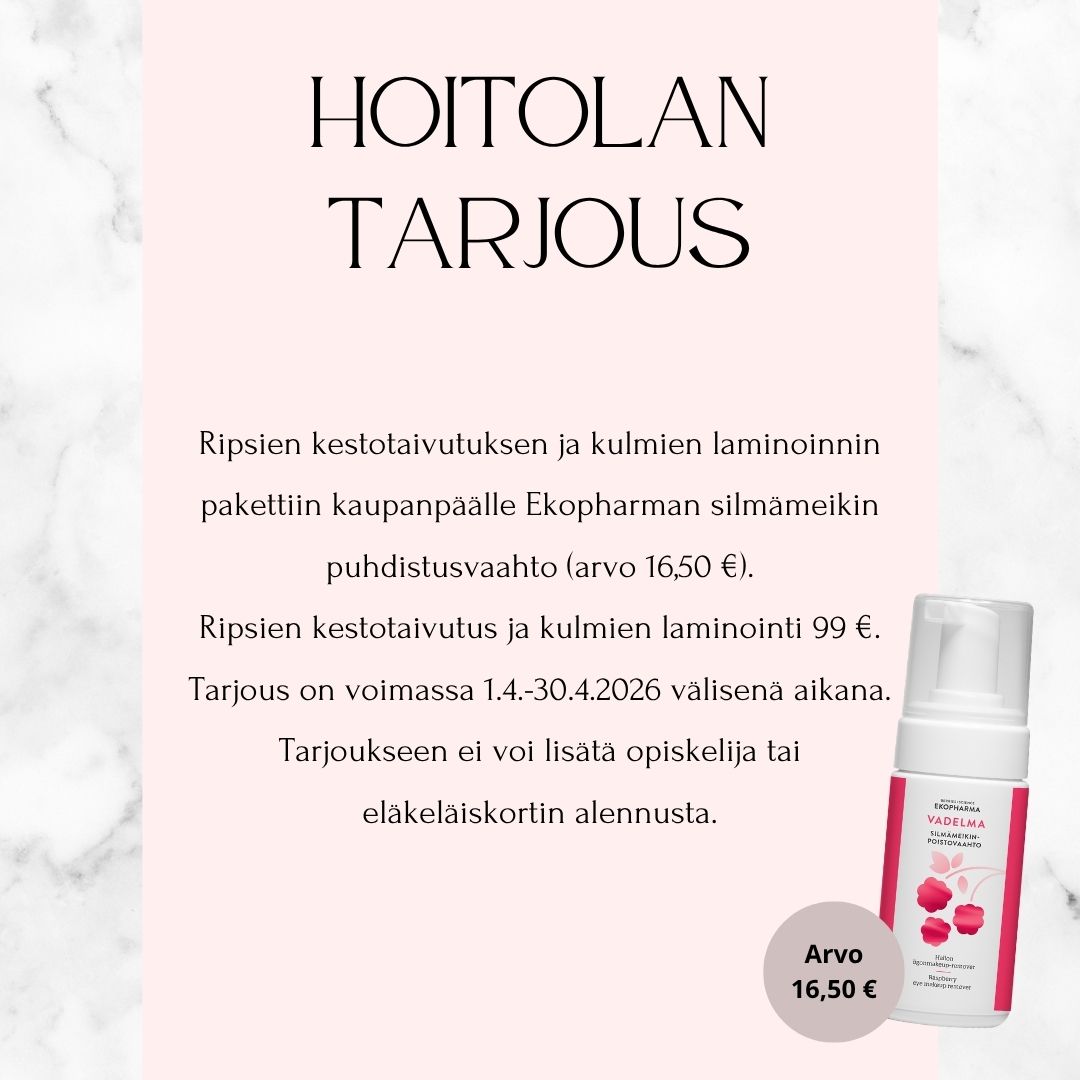 Hoitolan palveluihin kuuluvat Ekopharman kasvohoidot, sokeroinnit, ripsien kestotaivutus, kulmien laminointi, ripsien ja kulmien värjäys, kulmien muotoilu ja jalkahoidot. Hoitolasta löydät myös hoitavat lahjakortit.